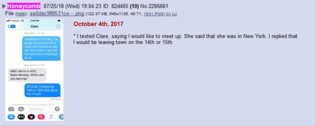 À partir de ce moment, Isaac Kappy a posté des messages sur 8chan sous le pseudo Honeycomb [rayon de miel].