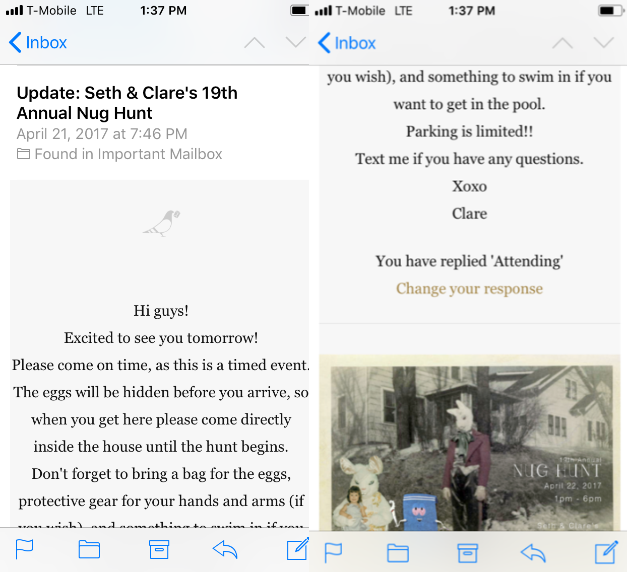 Regardez la petite fille entre les bras du lapin sur l’image de l’invitation. Voir la section consacrée au producteur James Gunn, dans l’article Hollywood : derrière le rêve, la porcherie, la fête sur le thème de la pédophilie, on retrouve l’association « lapin et petites filles ».