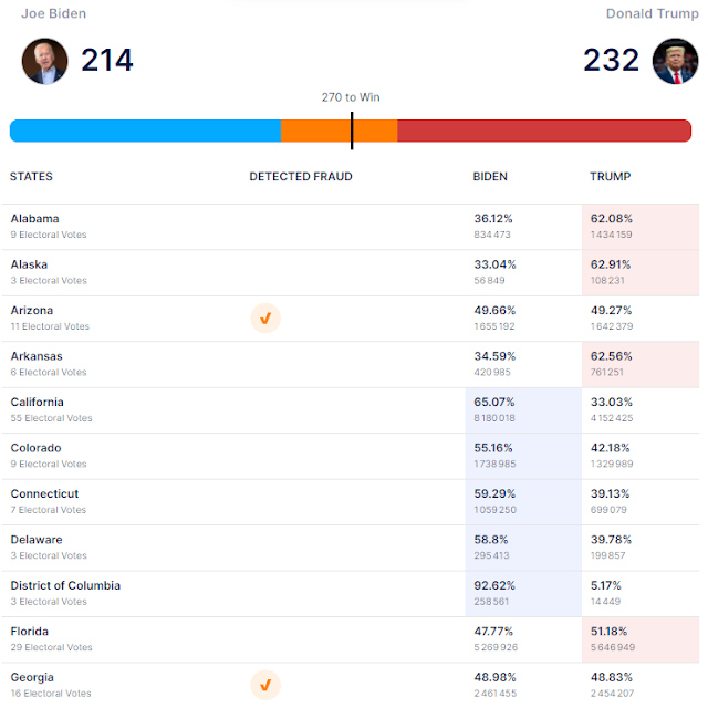 Vous pouvez suivre l’évolution de ce basculement électoral sur le site EVERY LEGAL VOTE qui est très clair, où il y a peu de texte et où les graphiques et comptages évolutifs sont parlants. Je mettrai cet article à jour jusqu’à l’élection finale de Donald Trump.