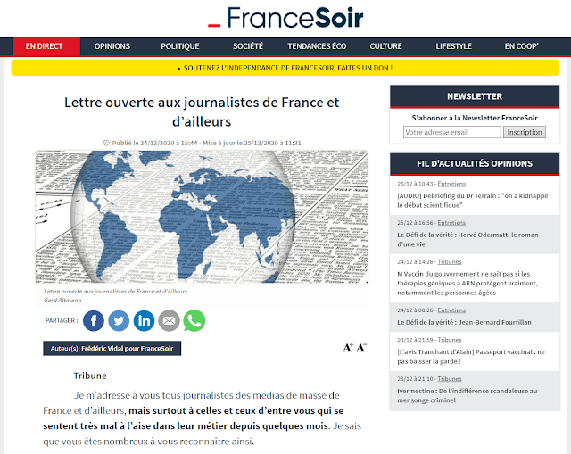 Si vous voulez téléchargez cet article de France-Soir en PDF, pour l’envoyer par e-mail, vous le trouverez ici : Lettre ouverte aux journalistes de France et d’ailleurs.