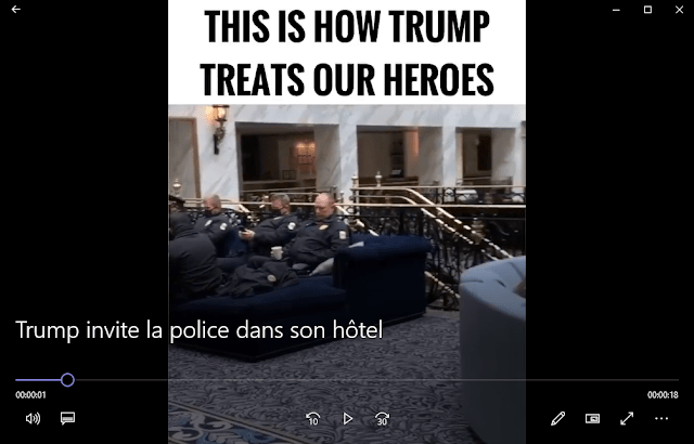 Cette vidéo était postée sur Tweeter avec ce commentaire : Wow ! Donald Trump a ouvert son hôtel pour la police de DC !