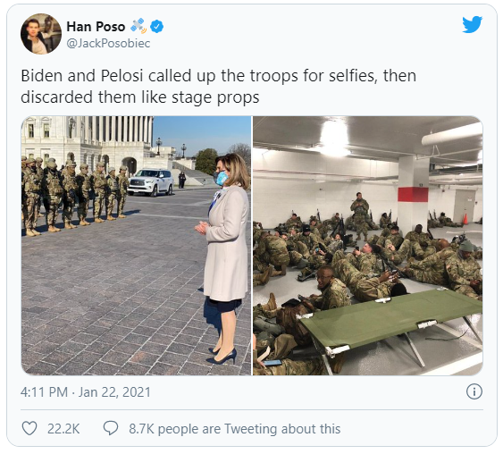 Biden et Pelosi ont appelé les troupes pour faire des selfies, puis s’en sont débarrassés comme si c’était des accessoires de scène.