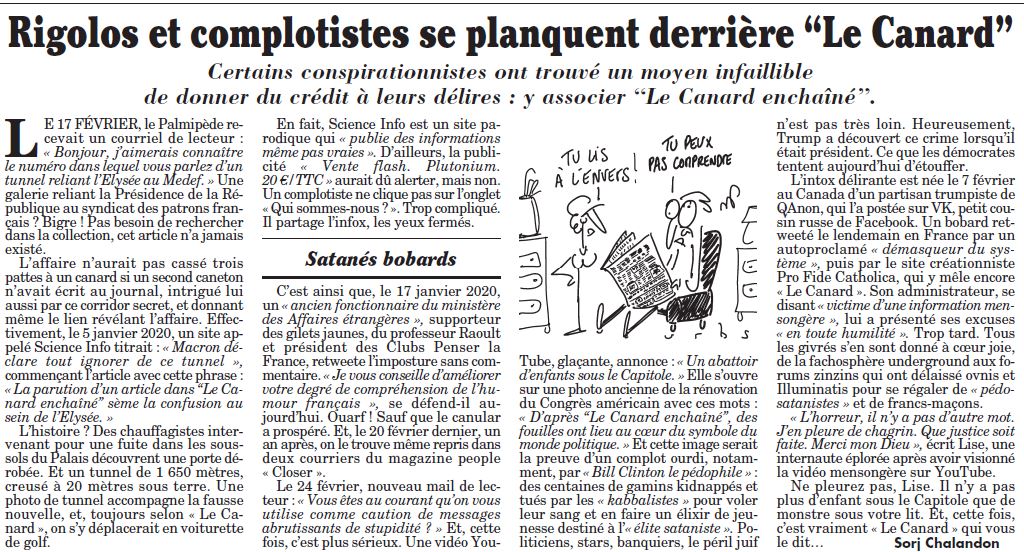 3 replies on “Le tunnel sous l'Élysée rejoint le terrier de lapin d'Alice au Pays des fake news”