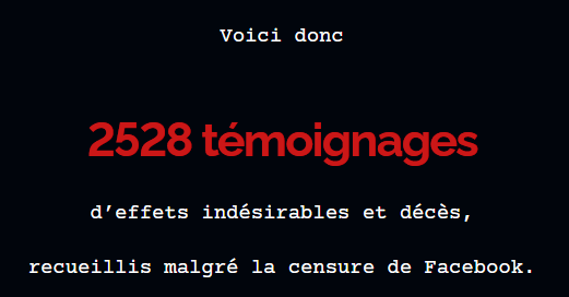 Sur cette page de recensement de ceux qui souffrent ou disparaissent dans le silence assourdissant des médias et politiques assassins, Ils ont testé pour vous, le fakecin, le nombre de témoignages continue de grossir chaque jour…