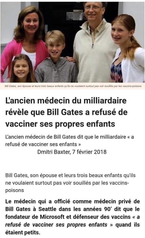 Enfin, cerise sur le gâteau empoisonné, n’oublions pas que pour Bill Gates, comme pour beaucoup d’élites, il est hors de question de faire vacciner ses enfants…