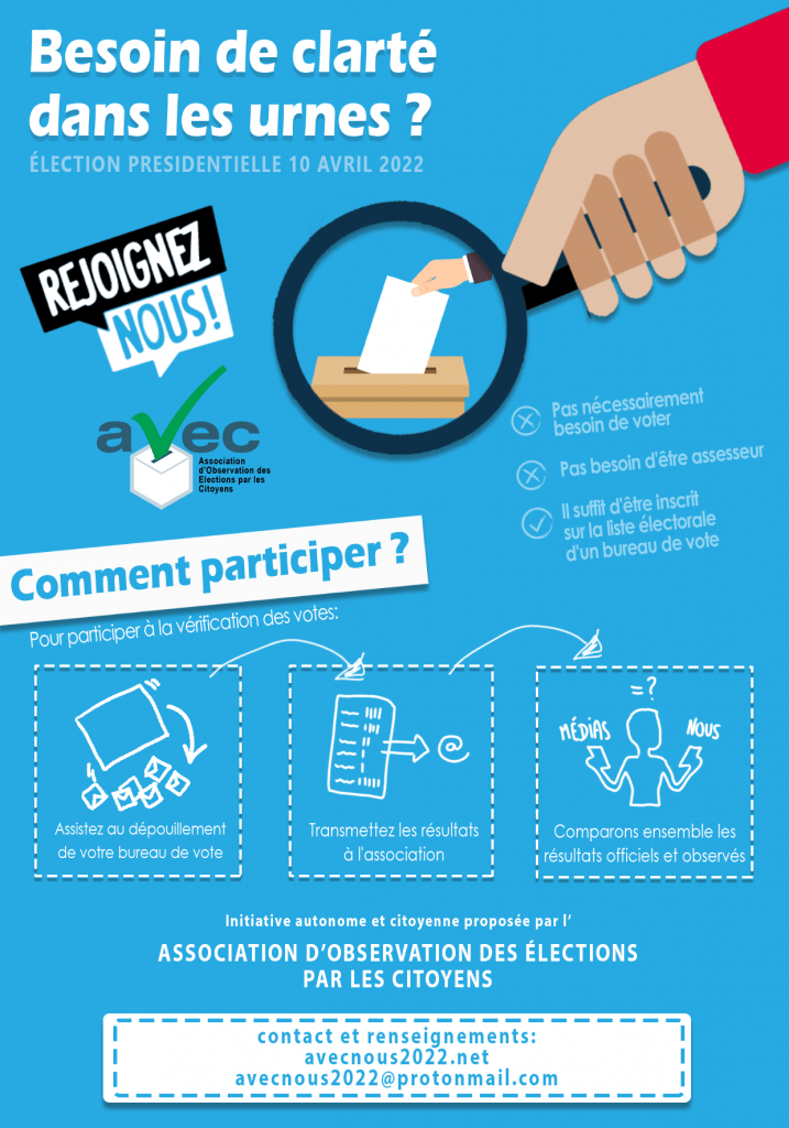 Et comme un électeur averti en vaut deux, voici deux associations de contrôle des élections auxquelles vous pouvez vous inscrire :