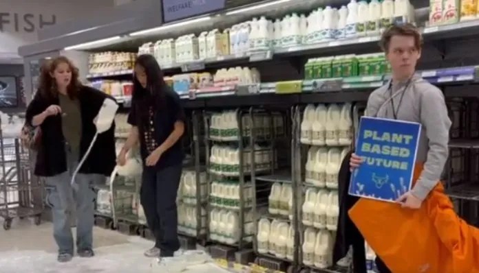 Le mouvement végan est, comme toutes les sections d’assaut social, poussé par les Open Society Fundations de George SSoros (voir cet article en français). Le diable est partout et l’on peut repérer son odeur sulfureuse à l’hystérie de ses activistes, comme ces végans qui renversent du lait dans les supermarchés anglais pour protester contre la consommation de produits lactés.
