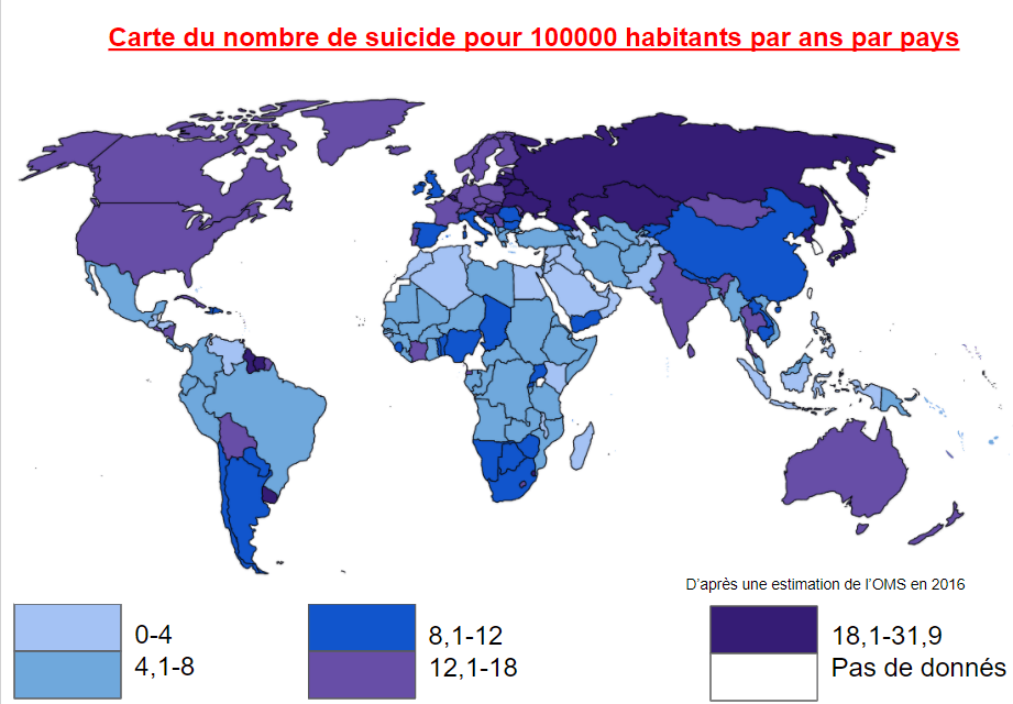 Sachant que de nos jours, les pays avec le plus haut taux de suicide ne sont pas les plus pauvres :