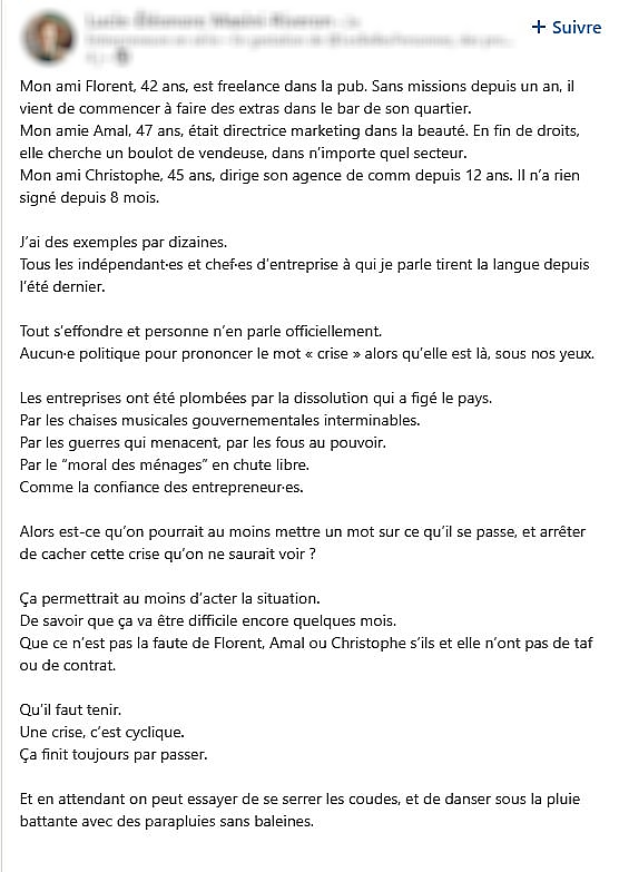 — Mais mon pauvre monsieur, ils se déplacent même plus. Ils disent qu’ils peuvent rien faire », qu’elle me répond avec des trémolos d’émotion dans la voix.