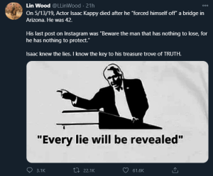 J’ai récupéré tous les tweets de Lin Wood et vais rapidement les traduire pour Le Mystère d’Isaac Kappy – Partie 6.
