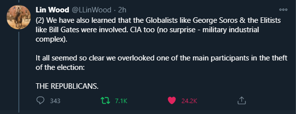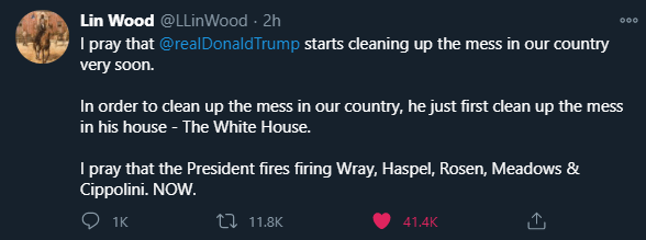 Lin Wood, avocat, patriote et loyal défenseur de Trump, a posté ce tweet le 31 décembre 2020, hier :