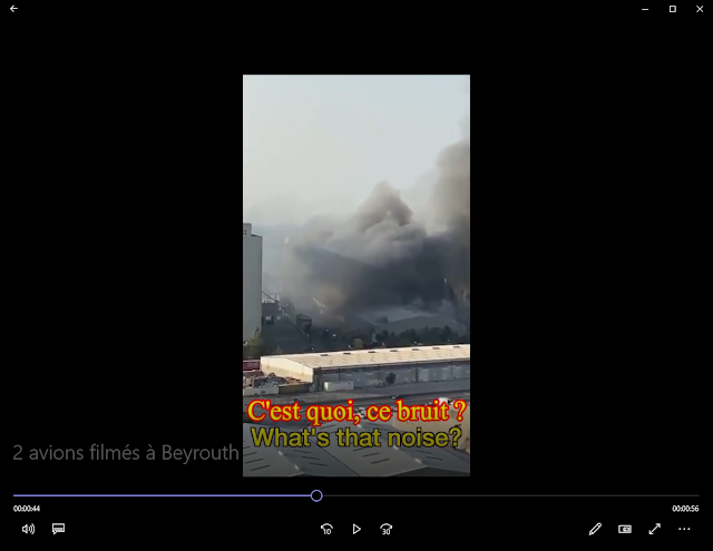 — Les vidéos montrant un missile s’abattant sur le port de Beyrouth, comme celle sur laquelle a été appliqué un film négatif, sont aussi des montages.
