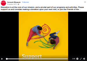 — Voici la capture d’une vidéo promotionnelle pour le musée Sursock qui affiche : « L’éducation est au cœur de notre mission, et une partie centrale de notre programme et de nos activités. Merci de nous soutenir et pensez à faire une donation lors de votre prochaine visite ou rejoignez les Amis de … » (Source : Annie Que Portah, compte fermé)