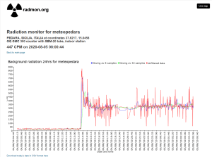 — Le 4 août 2020, à 14 h 06, 3 heures avant l’explosion, la plateforme de détection des radiations affichées sur radmon.org a repéré un pic de radiation de niveau « alerte rouge » en Sicile.