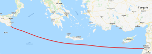 — À vol d’avion, la Sicile est à 1862 km du Beyrouth, soit une heure et demie pour un jet fighter volant à une vitesse moyenne de Mach 2, la vitesse de pointe des jets conventionnels étant Mach 2,5.