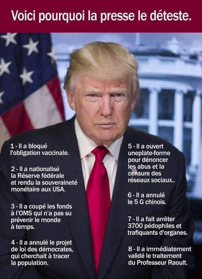 À savoir que Donald Trump est le président américain qui a plus œuvré pour la démocratie que tous les présidents démocrates réunis, à commencer par Obama, Clinton et Bush.
