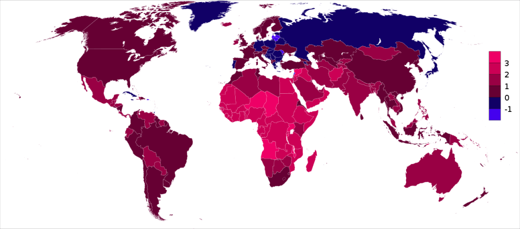 La carte ci-dessus se trouve sur la page Wikipédia de Surpopulation.